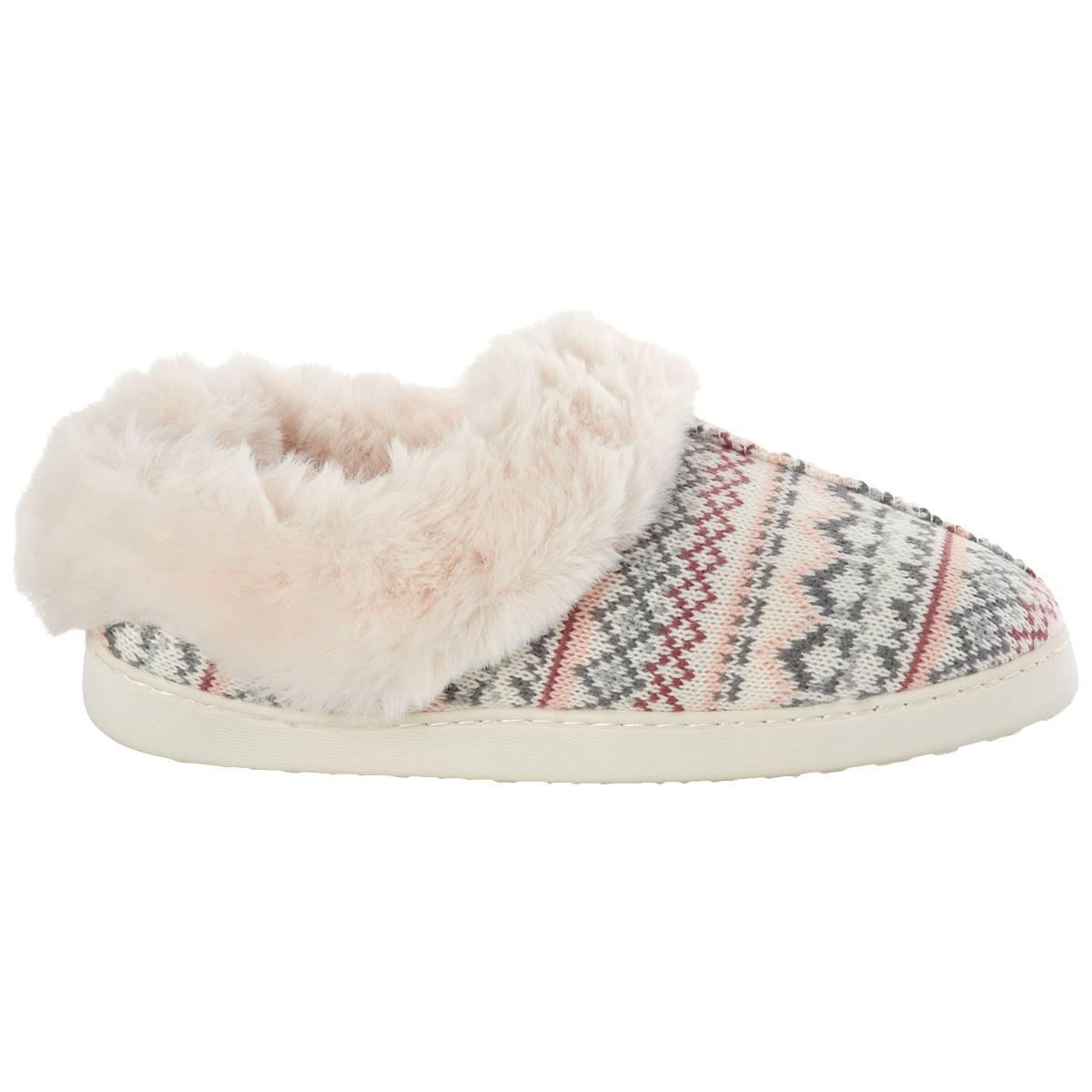 Womens Cuddl Duds(R) Fair Isle Knit Clog Slipper w/ Faux Fur Collar