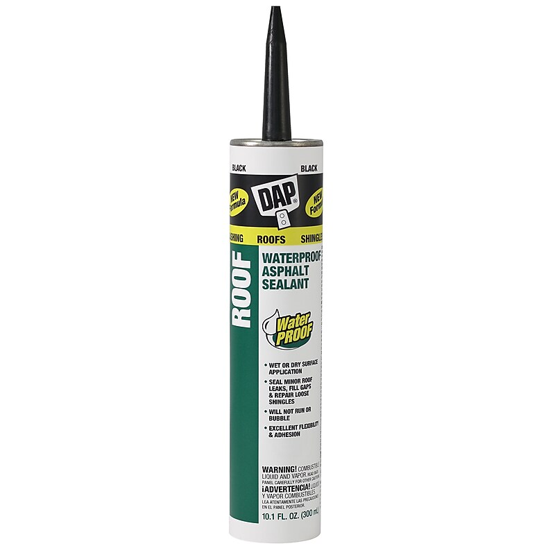 DAP ROOF ASPHALT FILLER & SEALER model 7079818268 forms a durable, flexible, weather resistant and waterproof seal and can be used for both wet and dry applications. Long-lasting, weatherproof seal. Can be used for wet or dry applications including emergency leak repairs. Will not run or bubble. Exterior Use. 10. 1 oz, Black. ⚠ WARNING: This product can expose you to chemicals known to the State of California to cause cancer. For more information, go to: www. P65Warnings. ca. gov. DAP ROOF ASPHALT FILLER & SEALER is a high performance, waterproof, asphalt-based sealant for sealingroof gaps and joints, spotting shingles and repairing minor roof leaks.