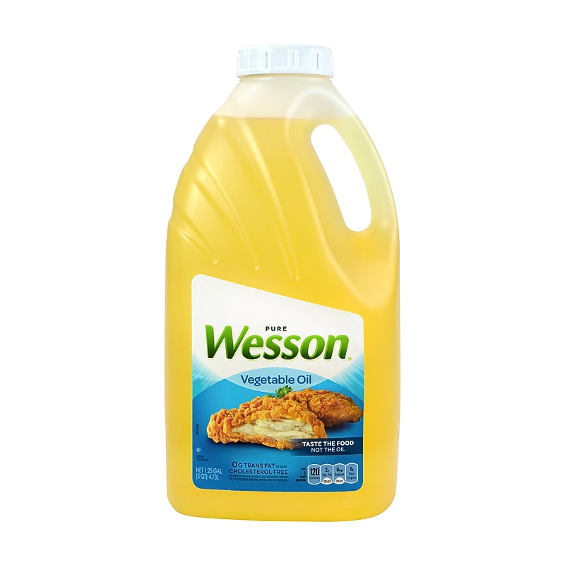 Pure Wesson Vegetable Oil is the most versatile type of vegetable oil and it provides the best nutritional balance of all popular cooking oils. Wesson Canola Oil's light, delicate taste makes it the perect oil to be used in every recipe that calls for vegetable oil. A 5-Quart bottle of Wesson Pure Vegetable Oil. Cholesterol Free, Heart Healthy and 0-Grams of Trans Fat. Can be used for all types of applications in the kitchen. Delivery is not available for customers in Hawaii or Alaska.
