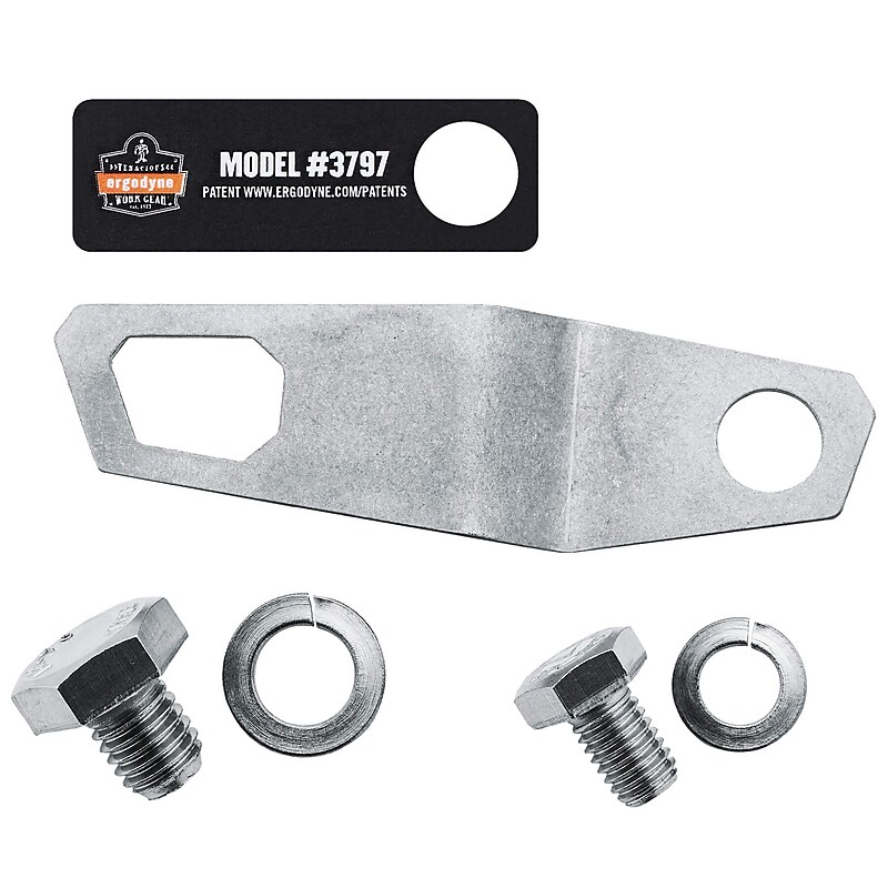 The Squids 3797 Power Tool Bracket for Grinders creates a unique tool attachment point to tether corded and cordless grinder power tools with a tool lanyard. Connection points for tool lanyards are not always readily available on power tools, which can create hazardous environments while working at heights. Tethering your tools should be a part of an overall fall protection plan to reduce the risk of dropped objects and increase workplace safety. The stainless-steel tool bracket comes complete with a set of two metric fasteners (M8, M10) to mount to a variety of grinders from brands including Bosch, Milwaukee, Makita, DeWalt and many others. STRAIGHTFORWARD INSTALLATIONThe one-time assembly creates a quick and easy one-step attachment to tether a lanyard to your power tools. Simply fasten the included tool bracket and labels onto screw ports intended for accessory belt hooks. Once the appropriate torque is applied to the anchor point, connect a tool lanyard to the bracket tether point to safely and securely tether tools. PERFECT FOR TOOLS WITH SCREW PORTSThe Power Tool Bracket for Grinders is the perfect solution for any grinder up to 8lbs. (3. 63kg. ) in weight. The Bracket has a patented design that forces the tether directionally away from the grinders wheel. Though intended for corded or cordless angle grinders these brackets can also fasten to cameras, laser alignment tools and other tools and devices that contain screw ports which fit M8 and M10 fasteners. Approved to the ANSI/ISEA 121-2018 standard. Stainless-steel bracket with built-in connection point for tool tethering is corrosion-resistant to withstand weathering. Patent-pending tool bracket design fastens to open screw port on grinders and directionally pushes the lanyard away from the grinders wheel. Set includes 1 bracket connection point, 2 fasteners and locking washers and 1 product label. Perfect for corded or cordless angle grinders and similar power tools. Ambidextrous design can be flipped to either side of the tool attaching to open screw ports meant for grinder handles. Fasteners include stainless-steel M8 and M10 hex head bolts. Maximum tethering capacity of 8lbs. (3. 63kg. ).