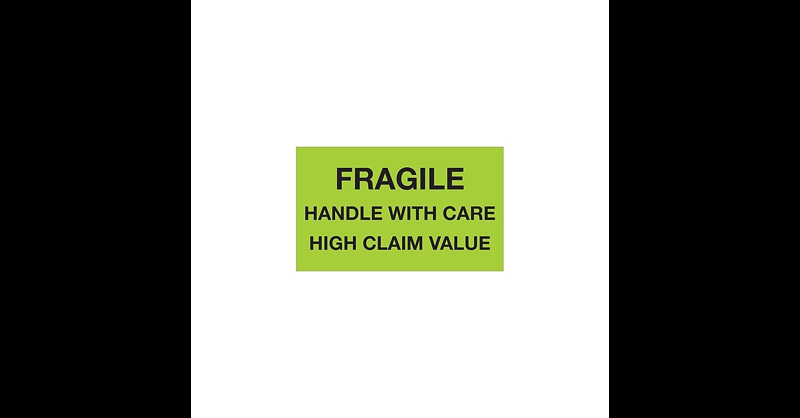 3" x - "Fragile Handle With Care - High Claim Value" Labels. Boldly display instructions and warnings with pressure sensitive labels. Table top dispensers available stock numbers SL9506, SL9512 and SL9518. Wall Mount dispensers available stock numbers LDM300, LDM450, LDM850 and LDM1250. Table top dispensers available stock numbers SL9506, SL9512 and SL9518. Wall Mount dispensers available stock numbers LDM300, LDM450, LDM850 and LDM1250. 500 Labels Per Roll. Boldly display instructions and warnings with pressure sensitive labels.