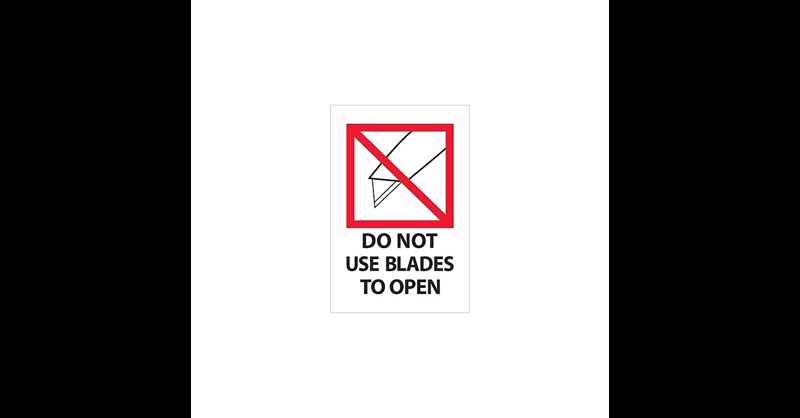 4 x - "Do Not Use Blades to Open" Labels. Boldly display instructions and warnings with pressure sensitive labels. Table top dispensers available stock numbers SL9506, SL9512 and SL9518. Wall Mount dispensers available stock numbers LDM300, LDM450, LDM850 and LDM1250. Table top dispensers available stock numbers SL9506, SL9512 and SL9518. Wall Mount dispensers available stock numbers LDM300, LDM450, LDM850 and LDM1250. 500 Labels Per Roll. Boldly display instructions and warnings with pressure sensitive labels.