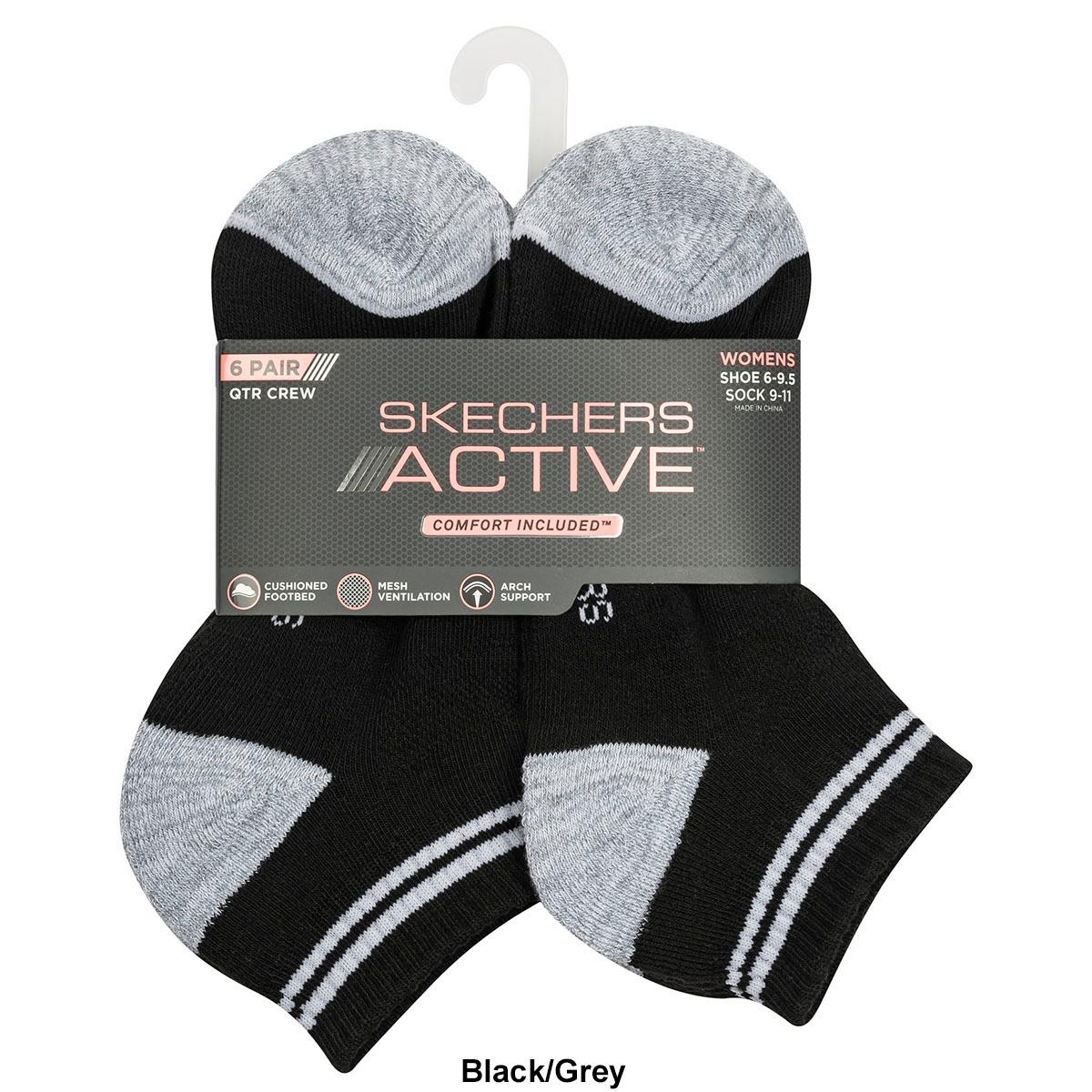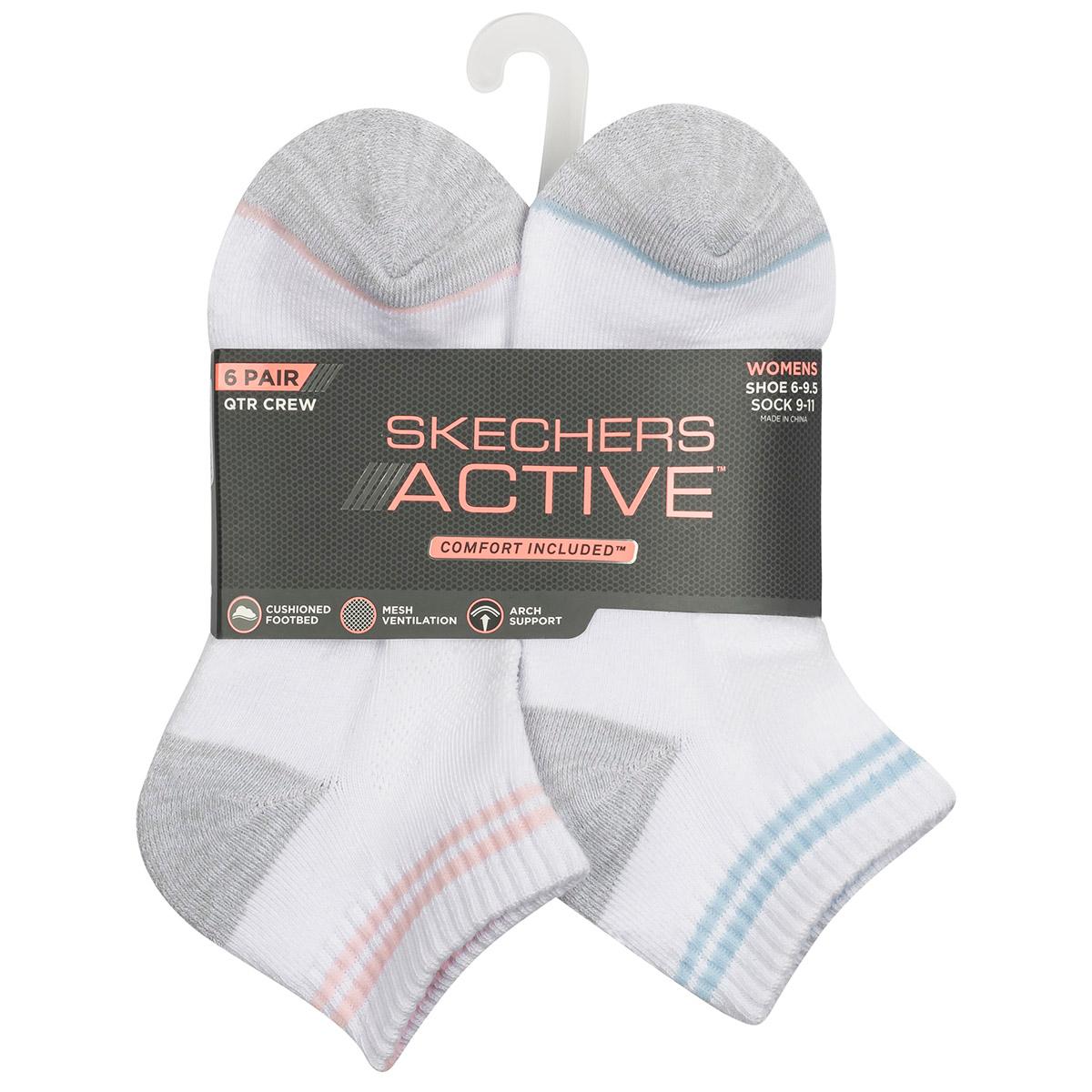 Womens Skechers 6pk. Active Quarter Crew Terry Socks