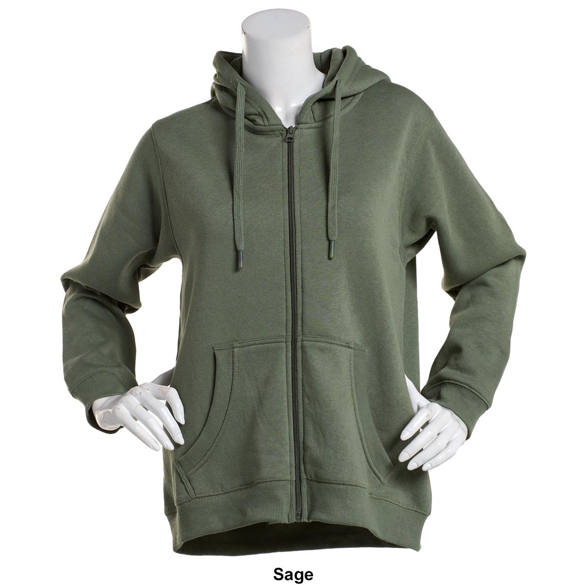 Stay warm whether you're working out or running errands with this Womens Starting Point ultrasoft full zip jacket. The fleece jacket features long sleeves, a rib knit trim, a drawstring hood, and a kangaroo front pocket.
