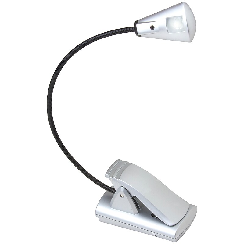 The book light clips to any size book, magazine, e-reader, tablet, laptop and so much more. It can also be used for convenient table top illumination. The FlexNeck Booklight runs on 3 AAA Batteries (not included). Carson backs their products with a Limited Lifetime Warranty. Booklight, can flex and turn to shine super-bright LED light right where you need it most. DIM: 1. 5" x 1. 7" x 6". 51 lumens. Requires 3 AAA batteries. Ultrabright LED reading light. Fully adjustable lamp head. Clips to books, magazines, tablets & e-readers. Ideal for needlework & crafts. Compact & portable design. Batteries Not Included. The FlexNeck Fully-Adjustable Booklight from Carson has a lamp head that can flex and turn to shine super-bright LED light right where you need it most.