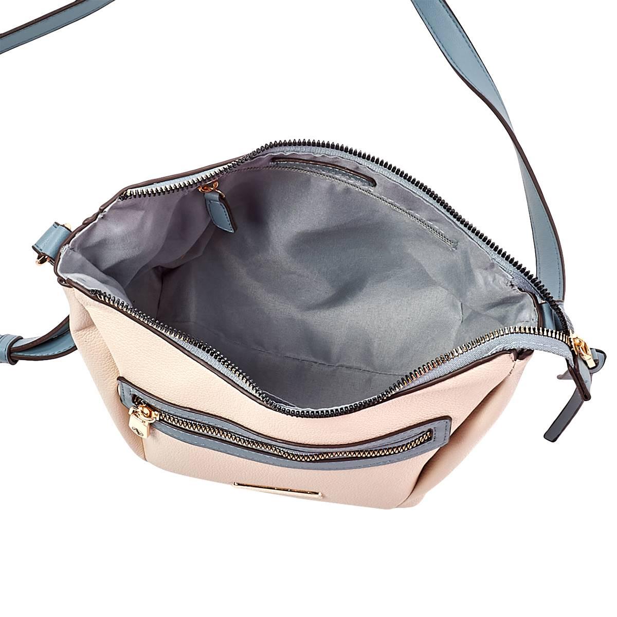 Pattern: Color Block Adjustable crossbody strap Top zipper closure Interior: One zip pocket, Two slip pockets Exterior: One front zip pocket Protective bottom feet Gold-tone hardware.