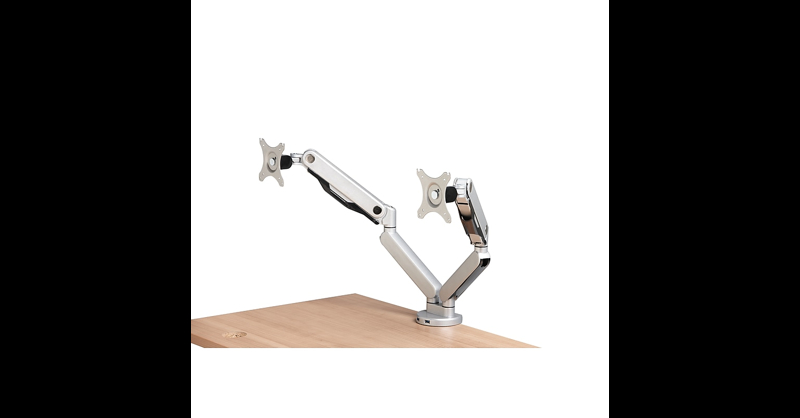 Free up more work space by using this monitor arm with two USB ports to bring your flat screen monitor to eye level and off your desk. It displays and moves a screen with a single mount. Easily tilt each monitor up and down or swivel it to position them wherever you desire. Monitor tilt ranges from 15 degrees to negative 85 degrees. Two USB ports provide a convenient way to stay connected to your data. Enclosed cable management presents a clean appearance. Install with grommet or desktop mounting. Arm is made of high-quality aluminum alloy. Its maximum extension is 21-. VESA compatibility is 75mm and 100mm. Single mount with dual monitor arms. Can withstand 17. 6 pounds per arm. Height adjust to 17 inches tall. Made of high quality aluminum alloy material. 12. 83"H x 5. 75"W x 15. 83"D. Two USB ports provide access to power and data. Holds two flat screen monitors with one arm. Model Option: HBDMAUSB.