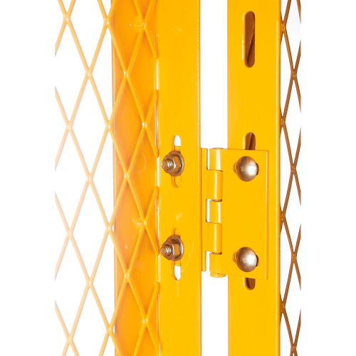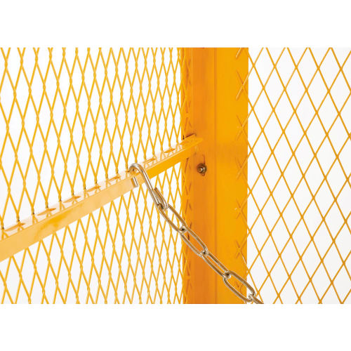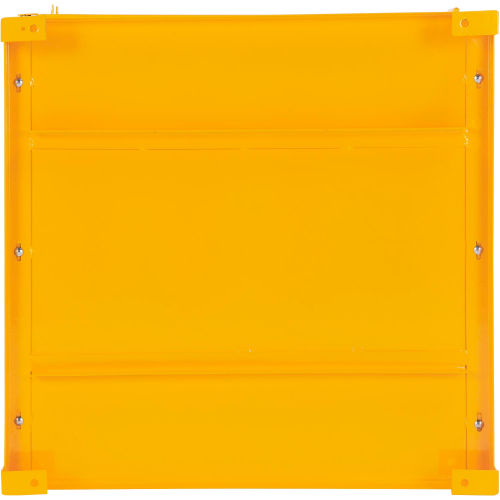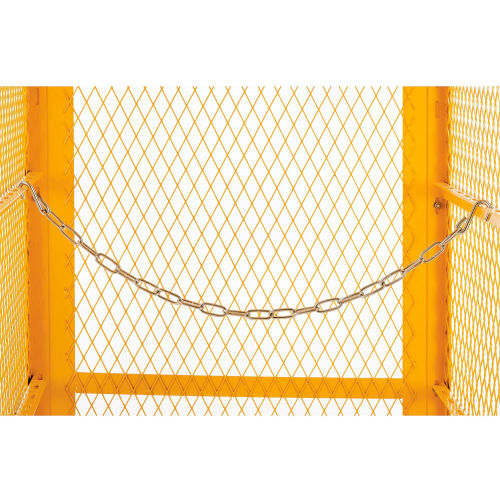 Cylinder Storage Cabinet Single Door Vertical, 9 Cylinder Capacity Cylinder Storage Cabinets are made of solid 14 gauge steel top and bottom for strength. Features 1/8"x1-3/16" expanded metal door(s) and sides which allow for ventilation and visibility of contents. Rust and acid resistant safety yellow powder coat finish for long lasting durability. Padlock hasp keeps contents secure for safety storing compressed air/gas cylinders and tanks. (padlock not included). Magnetic catches keep doors safely shut when not locked. Cabinet will accept 20 lb and 33 lb LPG cylinders. Vertical cabinets accept all standard vertical cylinders. Includes chain to hold cylinders in place. "DANGER FLAMMABLE MATERIALS" sign is located on the door(s). Pre-punched lagging holes in feet for anchoring to the ground. Comply with OSHA regulation1910.110 . Easy assembly.