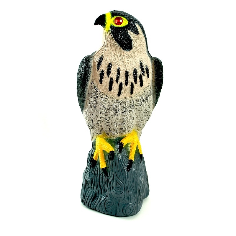 Birds have excellent eyesight and are frightened by unexpected visual signals or recognizable predators. Scare birds away with a visible deterrent product such as the Bird-X Falcon Decoy. The fearsome Peregrine Falcon feeds on smaller birds, including pigeons, gulls, sparrows, swallows, and starlings. The Falcon decoy is a quick, easy-to-install, cost-effective, and low-maintenance way to prevent pest bird infestation and to cut cleanup and repair costs. Reflective markings. For added stability, fill base with sand or gravel via removable plug or mount on 1. 5 in. Dia. pole. Bird-X Predator Falcon Decoy repels pest birds and other small animals. ⚠ WARNING: This product can expose you to chemicals including DEHP, which is known to the State of California to cause cancer and birth defect or other reproductive harm. For more information, go to www. P65Warnings. ca. gov.