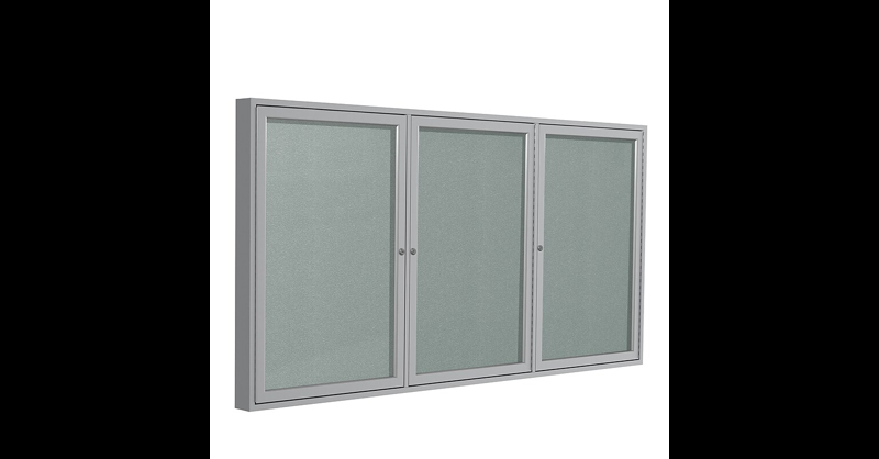 Ghent's Enclosed Vinyl Bulletin Board is the perfect way to display messages, pictures, and important information securely. The message center is made with a vinyl tack surface that hides pin holes and holds up under repeated tacking, providing years of reliable service. When used outside, our vinyl board will not break down or mold, unlike cork enclosed boards. You do not have to worry about damage from weather or humidity as long as you hang the board under an awning or overhang. Ghent's 3-door enclosed bulletin boards are protected using shatter-proof acrylic panels, full-length door hinges, and locks that are flush with the frame. You can install the board in high-traffic, public areas without worrying about damage or tampering. Hidden corner brackets allow the message center to sit flush against the wall without any visible hardware which adds protection from vandalism. The colored vinyl surface is paired with a Satin aluminum frame and includes 2 keys. Ships to you in Ghent's worry-free packaging, designed specifically for shipping enclosed boards. Ghent's Enclosed Vinyl Bulletin Board carries a 10-year warranty and is made in the USA. Perfect for indoor and outdoor use. Concealed corner brackets allow for easy and secure mounting. Weather-resistant durability with self-healing vinyl tack surface. Flush mount locks and shatter-resistant acrylic panels for added security. Carries a 10-year manufacturer warranty. Available in additional frame and vinyl color choices. ⚠ WARNING: This product can expose you to chemicals, including Lead, which are known to the State of California to cause cancer or birth defects or other reproductive harm. For more information, visit www. P65Warnings. ca. gov.