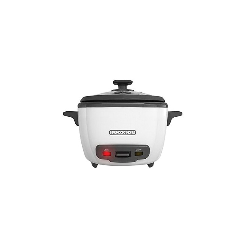 The Black & Decker RC516 16-cup rice cooker helps in cooking rice easily with just one touch. This rice cooker has dishwasher-safe and removable non-stick inner cooking bowl for easy cleaning. The automatic keep warm feature of this cooker keeps your food warm and fresh for longer hours. This cooker has a built-in lid holder that helps in holding lit conveniently on either sides of the handle. The tempered glass lid with steam vent, helps in covering food while preparing and after, whereas the steam vent lets off steam at perfect pace while cooking. This cooker comes with steamer basket to make healthy meals, measuring cup and spoon for cooking usage. Rice cooker. Dimensions: 11. 5"H x 11. 5"W x 9. 25"D. Comes in white color. Capacity: 16 cups (cooked rice). Tempered glass lid construction. Power: 500 W. Voltage: 120 V. Has removable non-stick bowl. Dishwasher-safe bowl. Has automatic keep-warm function. Has indicator lights. Built-in lid holder. Has steam vent. Used to prepare soups, stews and even oatmeal. Includes steamer basket, measuring cup and spoon. Weight: 6. 86 lbs. Comes with 2 year limited warranty. Black & Decker white 16-cup rice cooker features indicator lights, built-in lid holder and used to prepare soups, stews, and even oatmeal.