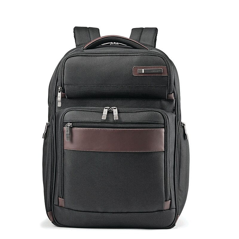 Samsonite Kombi Backpack designed to fit a lifestyle. Ballistic Nylon with Genuine Leather details. Padded laptop compartments. Matte gunmetal hardware. Business Organization including Key FOB and zippered pockets. Tablet Pockets. Smart Sleeve in genuine leather. Top carry handle features genuine leather. Performance mesh shoulder pads. Air mesh padded back. ⚠ WARNING: This product can expose you to chemicals including Di(2-ethylhexyl) phthalate (DEHP), which is known to the State of California to cause cancer and birth defects or other reproductive harm. For more information go to www. P65Warnings. co. gov.