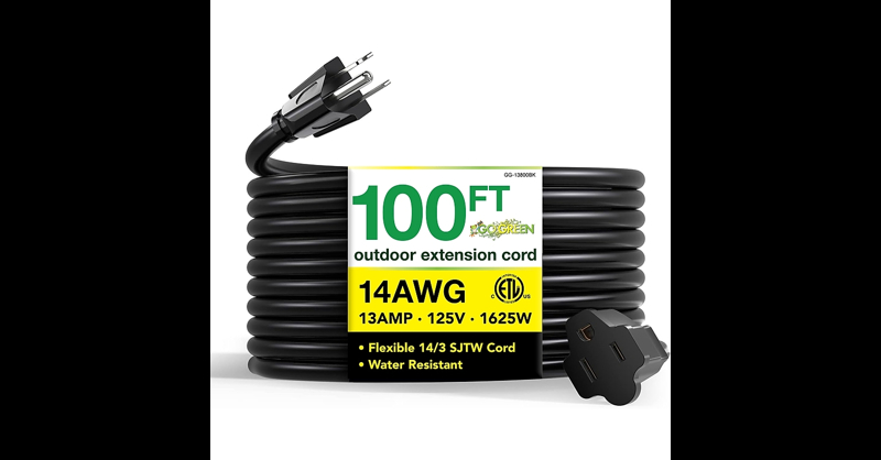 Increase your range with this GoGreen Power 14/3 Heavy Duty Extension Cord. It makes a smart addition to any collection of household supplies. This outdoor extension cord is extremely durable and stands up to the elements without issue. It resists moisture, abrasion and prolonged exposure to sunlight, making it dependable and long-lasting. Recommended for use with heavy-duty equipment and tools, the cord contains heavy-duty molded plugs. Contractor grade. ETL Listed / Certified. Color - ⚠ WARNING: This product contains chemicals known to the state of California to cause cancer and birth defects or other reproductive harms. Wash hands after handling the product. GoGreen Power grounded heavy duty extension cord provides polarized security with solid molded plugs.