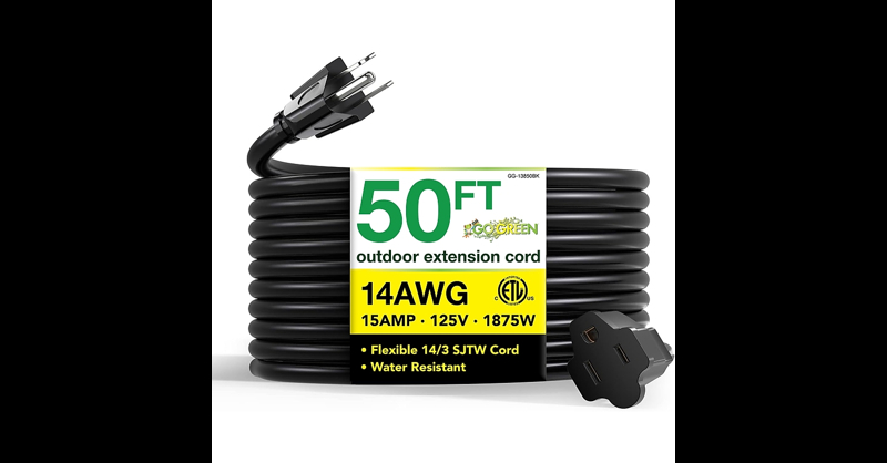 GoGreen Power Indoor/Outdoor Extension Cord, 14 AWG,()