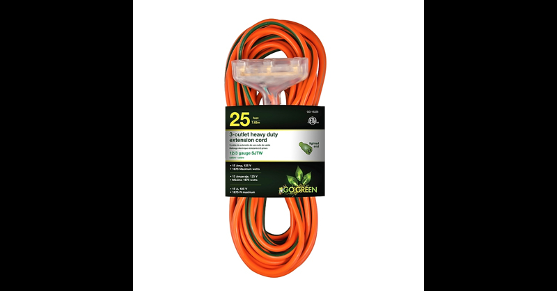 Update and improve the functionality of your home's patio or garage with this GoGreen Power 3 outlet Heavy Duty Extension Cord, Lighted End. It will resist moisture, abrasion and prolonged exposure to sunlight for enhanced durability. This 3-outlet extension cord is ETL-certified. It offers the ability to turn one outlet into three outlets to help accommodate your power distribution needs. It's ideal for use around your garage, your home and your work site. The plug illuminates to show when power is on to promote safe and convenient use. Resists moisture, abrasion and exposure to sunlight. ETL Listed / Certified. Lighted end plug. ⚠ WARNING: This product contains chemicals known to the state of California to cause cancer and birth defects or other reproductive harms. Wash hands after handling the product. GoGreen Power 3 Outlet grounded heavy duty extension cord provides polarized security and lighted end plug to show power is on.