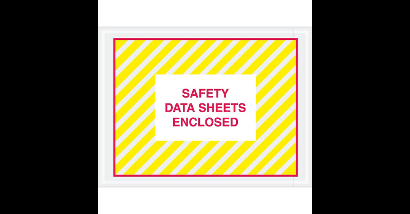 4 1/2 "Safety Data Sheets Enclosed" SDS Envelopes. Pressure sensitive envelopes secure and protect documents that are attached to the outside of shipments. Pre-printed with "Safety Data Sheet information on heavy 2 Mil poly. Hot melt adhesive backing provides strong adhesion to paper and corrugated products. Envelopes open along the first dimension. Pressure sensitive envelopes secure and protect documents that are attached to the outside of shipments. Pre-printed with "Safety Data Sheet information on heavy 2 Mil poly. Hot melt adhesive backing provides strong adhesion to paper and corrugated products. Envelopes open along the first dimension.