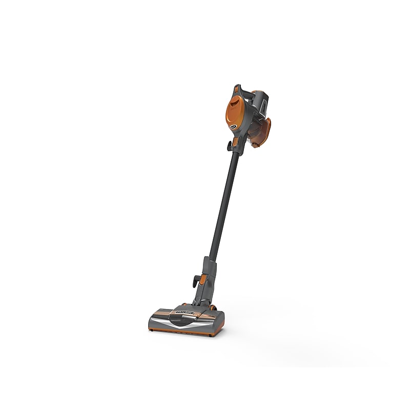 Shark Rocket vacuum has 8. 3" wide nozzle and bagless technology for better performance. Vacuum is wall mountable, has HEPA type filtration and includes 12" crevice tool, dusting brush and wide upholstery tool. Cord length: 30'. Rated current: 4. 2 A. Power: 500 W. Dimensions: 46"(H) x 10. 5"(W) x 9. 875"(D). Cleaning path width: 10". Surface cleaning types: Carpet, bare floors. Nozzle width: 8. 3". Bagless technology saves time and energy with no bags to replace. Small dust cup. Wall mount, lightweight for easy maneuverability. HEPA filtration. Includes 12" crevice tool, dusting brush, wide upholstery tool, dust away attachment kit, accessories bag and wall mount. Shark Rocket vacuum in copper/gray color is ultra-lightweight and used to clean carpet, bare floors.