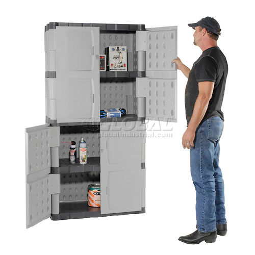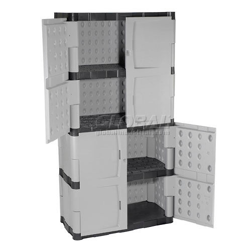 Buy Rubbermaid Plastic Storage Cabinet w/ Full Double Doors, 36"W x 18"D x 72"H, Gray, Unassembled for $349.95 at @ Globalindustrial.com