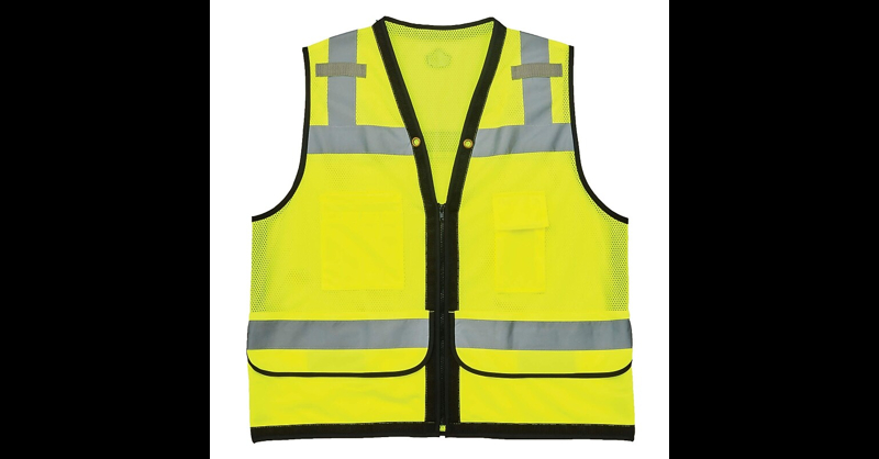 Class 2 Heavy-Duty Mesh Surveyors Vest:: Breathable mesh construction; packed with features and built to last. ANSI-compliant polyester mesh back (3. 6oz). Zipper closure. 2" ANSI-compliant reflective. Lanyard grommet holes + structured webbing. Pockets: Four outside, two inside. One large zippered rear document / tablet pocket. Dual radio mic tabs.