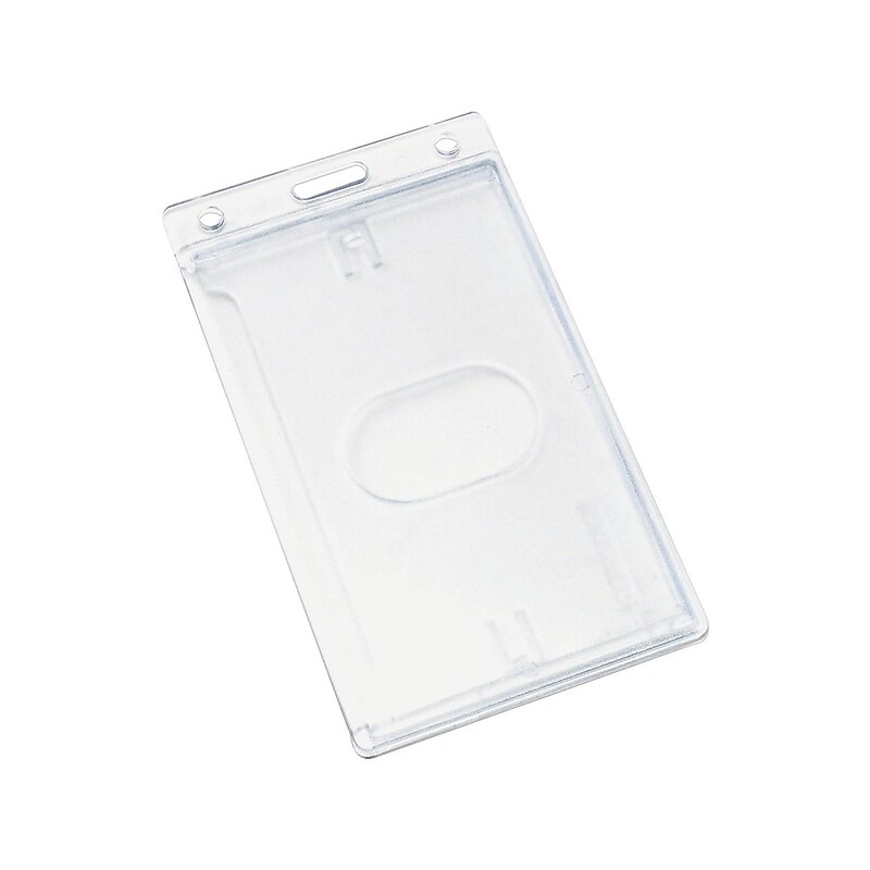 Protect and display ID cards and photos with this 25-count pack of vertical-style badge holders. Thumb notches help remove or insert cards easily, and the sturdy molded, rigid plastic isto ensure visibility and shield contents from dirt or damage during frequent use. These Advantus badge holders contain slots for lanyards or straps and holes for attaching chains to prevent loss. Fasten this ID badge holder to clothing, bags, and more to keep your hands free. Two convenient ways to attach badge, use with cord or clip. Badge holder has a thumb notch, so you can insert and remove your ID card easily. Accommodates cards up to 2 1/3"W x 3 3/8"L. Comes in a box of 25 ID badge holders. Made from frosted rigid plastic. Prepunched for use with strap clips, lanyards, reels, chains, and more. Portrait orientation for easy loading of the badge. Keep identification secure and visible with these Advantusvertical frosted rigid badge holders.
