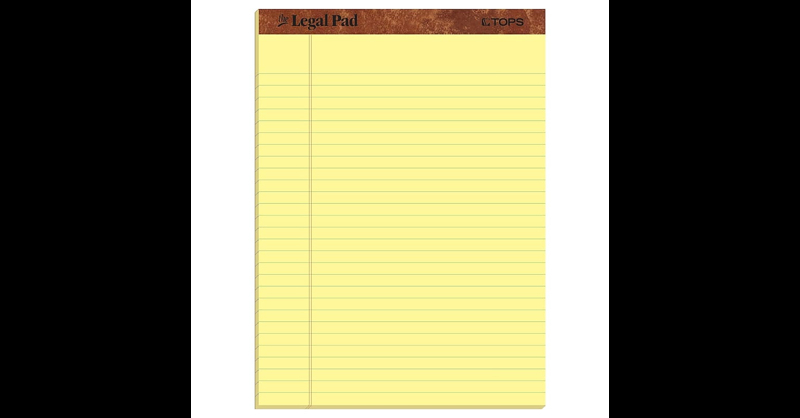 The classic format long preferred by attorneys and professionals gives you quick access to notes and lists. Smooth perforated sheets detach easily for a tidy, organized notebook. Proudly made in the USA. 8-1/2" 11-3/4".paper. Legal ruled, 50 sheets; 3 Pack. TOPS Writing Pads. 50 Perforated Sheets, 8-1/2" 11-3/4". 3 per Pack. Top Bound. Wide Ruled. Canary. Standard weight paper. Made in the USA. TOPS The Legal Pad Writing Pads offer the ultimate value in reliable everyday legal pads for home or office.