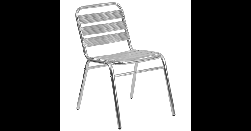 The Armless Chair with Slat Back is great for everyday use. Contemporary Patio Chair for Indoor and Outdoor Use. ArmlessFrame with Triple Slat Back. Recommended Stack Quantity: 17. 352 lb. Weight Capacity. Cross Braces provide extra stability. Floor Protector Plastic Glides. Ships Fully Assembled for quick setup. Designed for Indoor or Outdoor Use. Designed for Commercial or Residential Use.