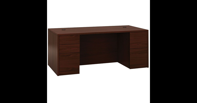 Build a hard-working workstation with 10500 Series laminate from HON, our bestselling desk collection. This 72"W double pedestal desk can be used alone, or paired with a double pedestal credenza and stack-on hutch to create an executive workstation. Laminate color is Thermally-fused laminate top and end panels are abrasion- and stain-resistant. Desk: 29 1/2"H x 72"W x 36"D. Drawers operate on ball bearing suspensions; file drawers extend fully and accommodate letter or legal size hanging files, box drawers extend three-quarters. Level 2 Certified; Meets or exceeds ANSI/BIFMA Standards; SCS Indoor Advantage Certified. Fully Assembled. Backed by the HON Full Lifetime Warranty. 10 1/2" conference overhang provides kneespace for guests. Full-height modesty panel for privacy. Two cord management grommets. HON "One Key" core removable locks make re-keying quick and easy. Model Option: H105890. NN.