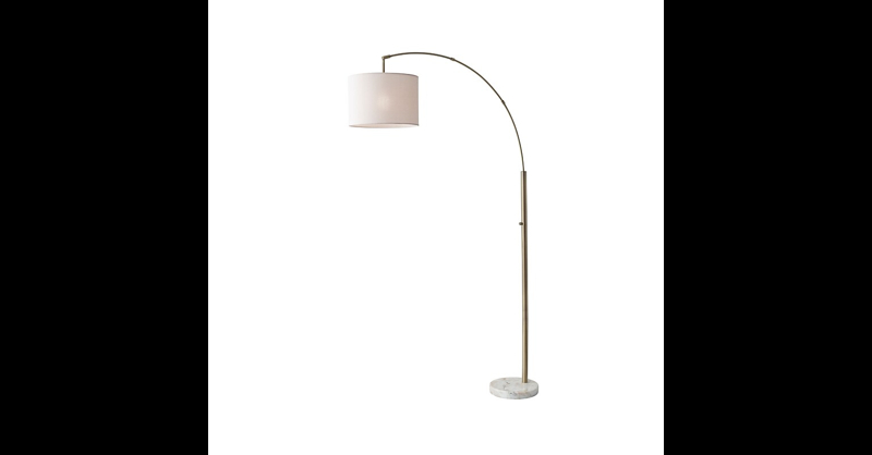 A smart and stylish way to light up a seating area, the Adesso Bowery Arc Lamp provides overhead lighting that can be controlled with an adjustable shade. Aside from functional assets, an antique brass finish is paired with a white marble base to display striking style. This lamp is smart outlet compatible. Decorative 1-light arc floor lamp with white marble base. Uses 1 x 100W incandescant or 26W CFL bulb (not included). Lamp height 73. 5". Antique brass finish. Off-white textured linen drum shade. Clear cord measures 60"L. On/Off rotary switch. Smart outlet compatible.