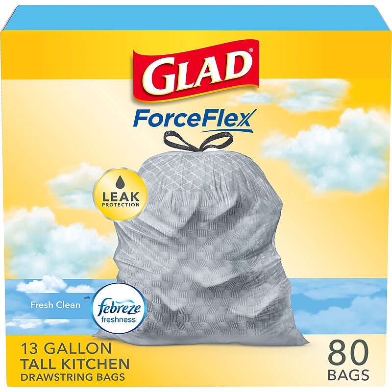 Buy Glad ForceFlex Tall Kitchen Drawstring Trash Bags, Gallon, Fresh Clean scent with Febreze Freshness, 80/Box(78534) for $31.95 at @ Globalindustrial.com