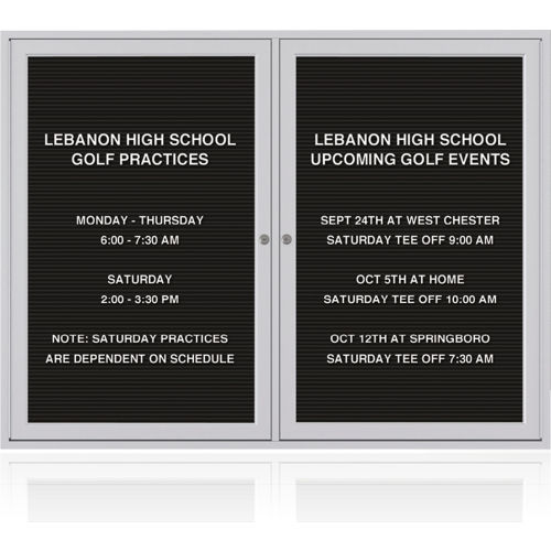 Ghent Enclosed Letter Board - Outdoor / Indoor - 2 Door - Black Letterboard w/Silver Frame