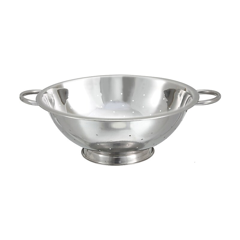 Perfect for draining different types of pasta and washing fresh produce, the Winco COD-3 Stainless Steel Colander 3 Qt. is a must-have in any commercial kitchen. Designed with precision-pierced perforations, this colander allows water to flow freely for fast drainage while its riveted handles offer a comfortable grip. Thanks to its footed base, this colander allows free standing draining and elevates food off the countertop. For outstanding durability, this colander is crafted from rust-resistant stainless steel which will resist warping even with heavy duty use. Colander 3 Qt. High quality stainless steel construction. Two sturdy handles fastened to the sides with a footed base. Use to drain and rinse pasta or vegetables.