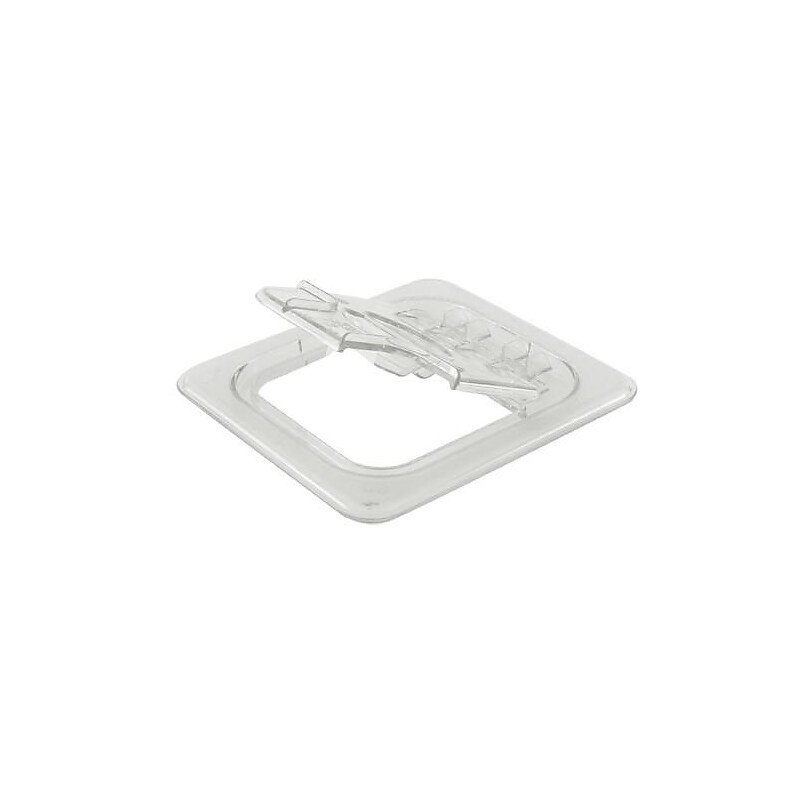 Cambros FlipLid food pan cover fits sixth size Camwear food pans. This flip-up style lid allows for easy access to contents and keeps your food fresher longer, as well as reducing risk of cross contamination. The notched Flip Lid has a virtually unbreakable Camwear polycarbonate construction to provide you with reliable food storage for years. A convenient notch is provided at the top of this lid to allow you to rest spoon in contents, while keeping the lid closed. Thepolycarbonate material makes it easy to see food contents inside this approximately 7" x 7" notched FlipLid. 6 15/16" L x 6 3/8" W. 1/6 size food pan. Clear polycarbonate construction. -40 degreesto 210 degrees F temperature range. NSF certified. WARNING: This product contains a chemical known to the State of California to cause birth defects or other reproductive harm. Will not dent or chip. Reduces spills and points of cross contamination.