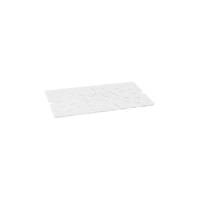 CambroCamwear Drain Shelf for Full Size Food Pans This clear drain shelf fits standard full size food pans and is made of virtually unbreakable Camwear polycarbonate that will not crack, bend or dent. It withstands temperatures from -40 degrees F to 210 degrees F, making it good for both hot and cold food, and has a smooth, non-stick surface. Full size drain pan. Fits full size. -40 degreesto 210 degrees F temperature range. NSF certified. WARNING: This product contains a chemical known to the State of California to cause birth defects or other reproductive harm.