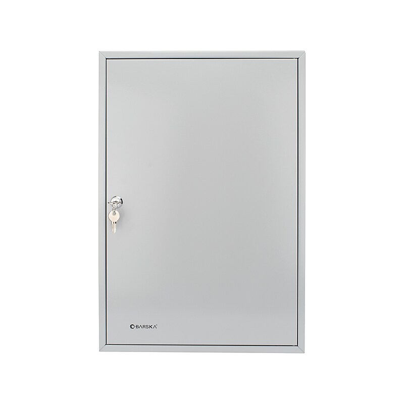 Get keys organized with this 160-position key cabinet. The door and walls of this cabinet are manufactured with 0. 8mm solid steel to provide the durability required to stand up to daily wear and tear, while thefinish adds a professional appearance. Thanks to the key log sheet, it's simple to keep track of what keys are checked out and by whom, while the predrilled holes and included mounting hardware let you put this safe on a wall for quick access to contents. This Barska key cabinet boasts 160 slots, making it ideal for office buildings and other businesses with large quantities of keys to keep track of. Key cabinet adds security to protect important keys. Made of steel and comes in gray. Can hold up to 160 keys. Dimensions: 22"H x 15"W x 3"D. Wall mounting hardware is included. Includes keys, wall mounting kit, and 160 key tags. ⚠ WARNING: Cancer and Reproductive Harm www. P65Warnings. ca. gov. Protect keys by keeping them in this Barska 160-position key cabinet.