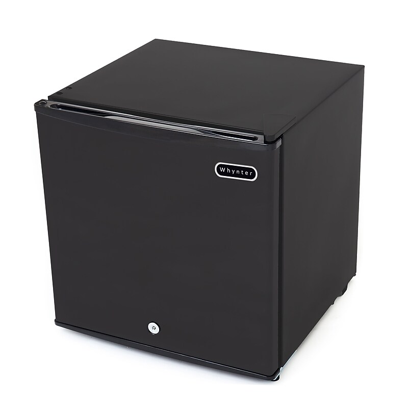 Ideal for any small space where cold storage is needed, the Whynter 1. 1 cu. ft. upright freezer can also be used in the kitchen, offices, garages or basements. This space-saving compact upright freezer is designed with a flush back, allowing it to fit cleanly against the wall or into corners. The Whynter 1. 1 cu. ft. upright freezer features areversible-swing door, adjustable thermostat, one removable shelf and a lock for securing the contents. As an ENERGY STAR rated appliance, this upright freezer will help you keep your energy costs down while providing efficient freezing solutions. 18. 75 x 17. 75 x 19. 5". Black. Total Storage Volume : 1. 1 cu. ft. Temperature Range: -10 degree - 2 degree F. One removable flat slide out wire shelf. Cylinder lock and two keys. Manual Defrost. Refrigerant type: R600a.