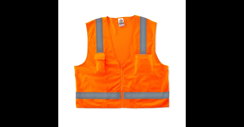 8249Z Class 2 Economy Surveyors Vest: Solid front, mesh back, zipper closure. (24011).ANSI-compliant poly solid front (3. 6oz) / mesh back (3. 3oz). Zipper closure. Pockets: Two inside, two outside. 2" ANSI-compliant reflective. Single radio mic tab. 46181507.