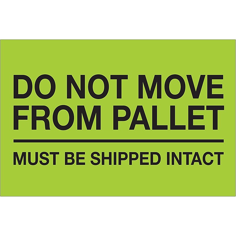 - "Do Not Move From Pallet" Labels. Boldly display instructions and warnings with pressure sensitive labels. Table top dispensers available stock numbers SL9506, SL9512 and SL9518. Wall Mount dispensers available stock numbers LDM250, LDM450, LDM850 and LDM1250. 500 per roll except 8 10 rolls which are 250 per roll. Pallet Protection Labels. 6". Green Rectangle Semi-Gloss Coated Paper. 500 labels per roll. Wall Mount dispensers available stock numbers LDM250, LDM450, LDM850 and LDM1250. Table top dispensers available stock numbers SL9506, SL9512 and SL9518. Boldly display instructions and warnings with pressure sensitive labels.