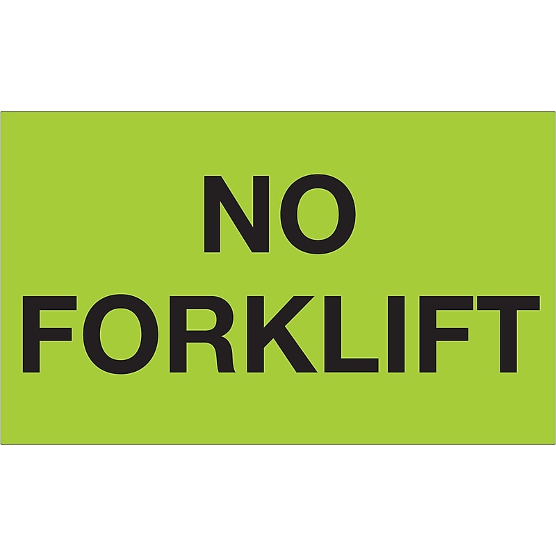- "No Forklift" Labels. Boldly display instructions and warnings with pressure sensitive labels. Table top dispensers available stock numbers SL9506, SL9512 and SL9518. Wall Mount dispensers available stock numbers LDM250, LDM450, LDM850 and LDM1250. 500 per roll. Production Labels. 5". Green Rectangle Semi-Gloss Coated Paper. 500 labels per roll. Table top dispensers available stock numbers SL9506, SL9512 and SL9518. Wall Mount dispensers available stock numbers LDM250, LDM450, LDM850 and LDM1250. Boldly display instructions and warnings with pressure sensitive labels.
