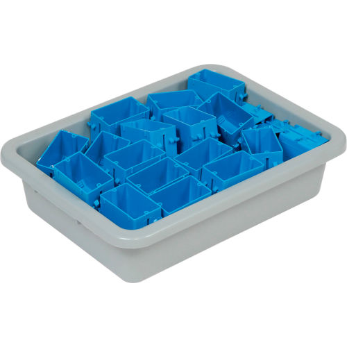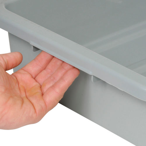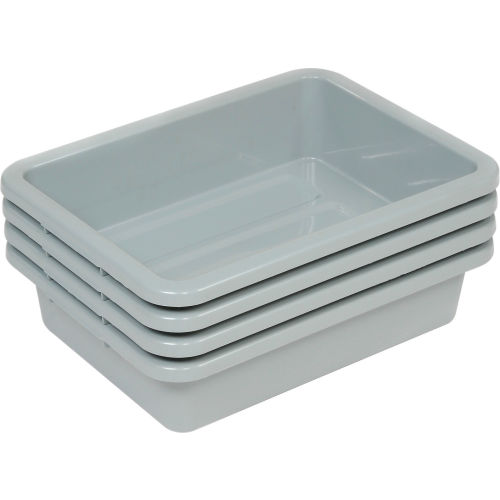 Nesting Totes Are Ideal For Transporting Large Quantities Of Small Items And Materials. Can be used as a bus box in restaurants, on conveyor systems for transporting goods or used in airports and areas with security checks. Conveniently stores personal belongings to pass security areas. Durable gray polyethylene tote is corrosion resistant. Provides excellent service for storing a wide range of items. Tote is nestable when not in use for convenient space saving storage. Measures 20-1/4"W x 15-1/4"D x 5"H.