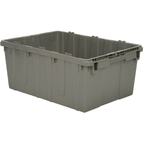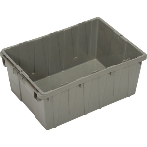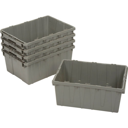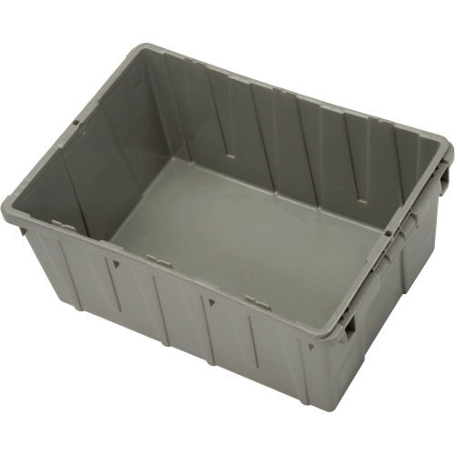 NESTABLE SHIPPING CONTAINERS 21-13/16"L x 15-3/16"W x 9-3/16"H Container Nestable containers meet the diverse needs of various picking and shipping environments. Safely and securely distribute materials with these durable, affordable shipping containers. Made using injection-molded high density polyethylene. Reusable totes can be used for over 250 trips. Ideal for health care, wholesale, pharmaceuticals, soft goods, grocery and more. Smooth, drafted walls allow easy handling. Molded-in grip handles have an integral hasp to accept cable ties or padlocks for security. Containers are nestable when empty for compact storage and reduced return shipping costs. Gray color. Optional Lids (sold separately) allow secure stacking with raised lip edges. Sold in carton quantities of 5. - Pkg Qty 5.
