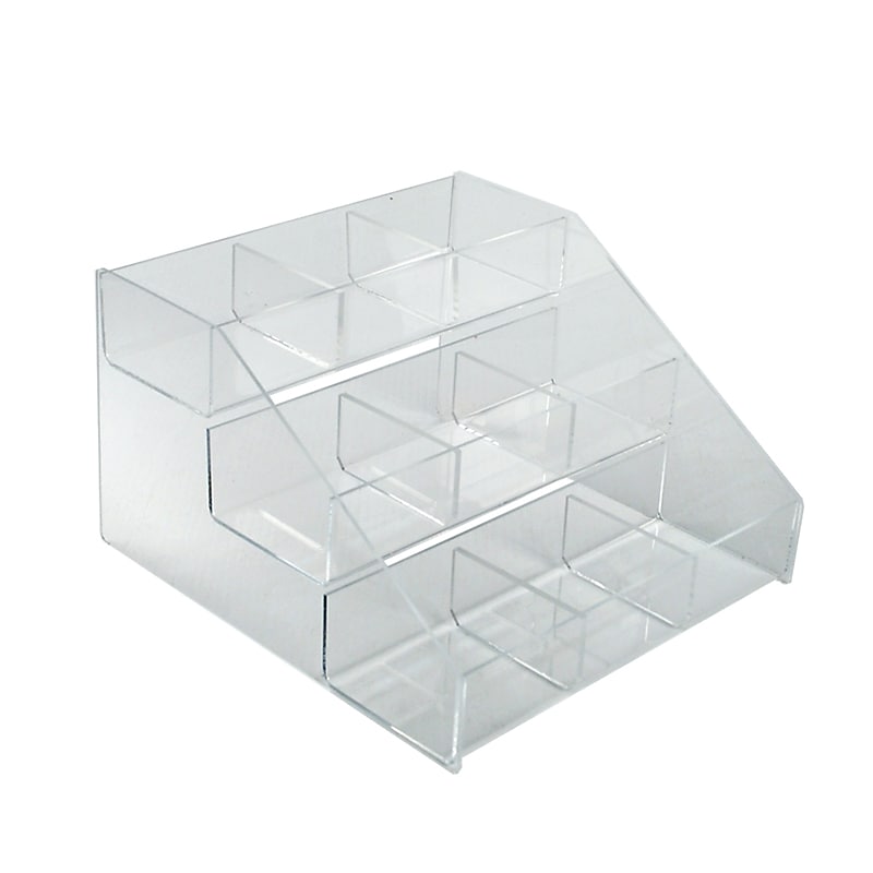 Three-Tier Counter, 9-Compartment Counter Step Display: 12"W x 11.75"D x 7.125"H