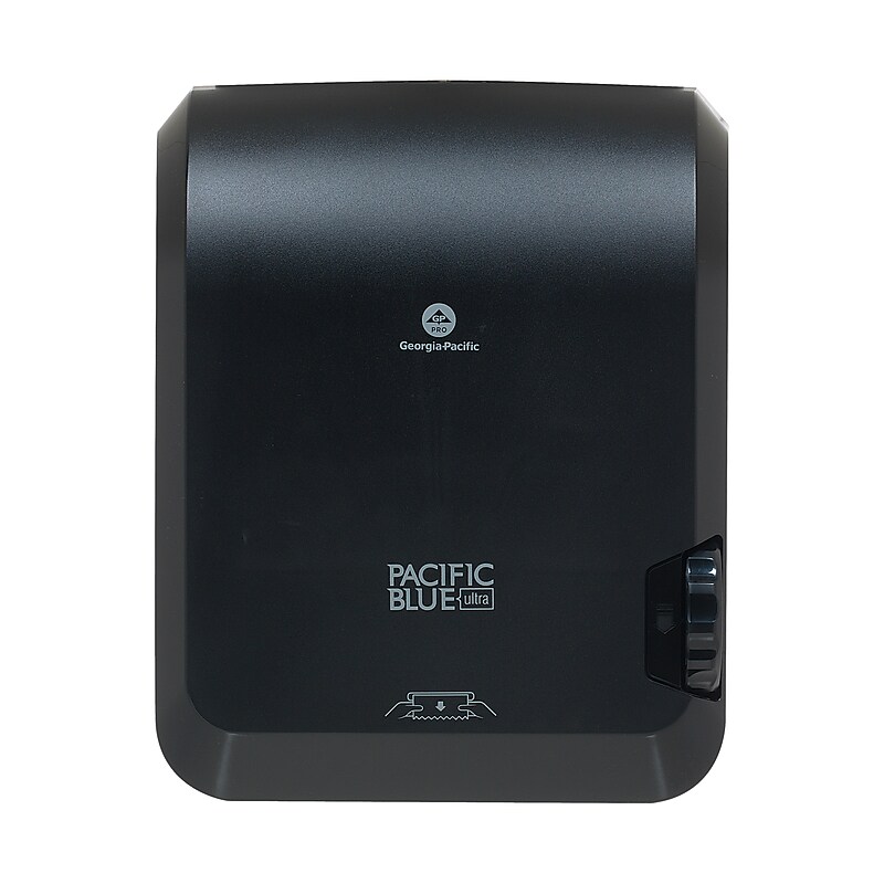 From the makers of enMotion products comes Pacific Blue Ultra Automated and Mechanical Paper Towel Dispensers. The automated dispenser features motion activation and touch-free dispensing, and the mechanical dispenser features a no-touch hang mode. Both dispensers offer one-at-a-time, enclosed dispensing, so you only touch the paper towel you use. That helps cut down on germ transmission, and helps reduce waste. Both dispensers use the same paper towel refills, so theyre a considerable value for the price. And refills for both dispensers are available in 3-roll and 6-roll cases, which helps control costs and maximize storage space. This dispensers long-lasting paper towel rolls help reduce maintenance calls and run-out, and help you save money. Pacific Blue Ultra dispensers are also built to handle heavy usage, and are backed by a 5-year warranty. Built to handle heavy usage and backed by a 5 year warranty. Easy-access front cover opens 180 degrees. High capacity 1150-ft towel rolls last longer, requiring less maintenance and minimizing refill frequency. High-quality budget-friendly choice with one-at-a-time towel dispensing to help prevent waste. Choose between white or brown paper towels and 3-Roll or 6-Roll cartons. Pacific Blue Ultra Manual Paper Towel Dispenser by Georgia-Pacific.