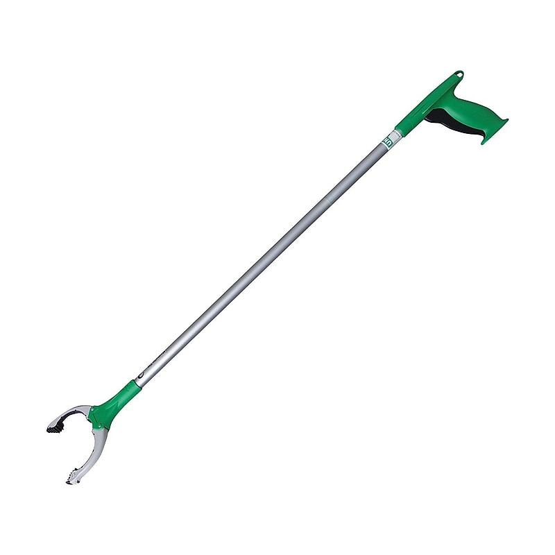 Make cleaning up the grounds around your building easy with this Unger NiftyNabber trigger-grip grabber. The durable claw eliminates the need to pick items up by hand, and the lightweight design offers added comfort as your janitorial crew picks up trash in your parking lot and surrounding property. The trigger-style operating mechanism requires only one hand for operation, leaving the other free to carry a trash bag. This 36-inch Unger NiftyNabber trigger-grip grabber features aluminum construction for long-lasting durability. All-purpose lightweight grabber with smooth action trigger grip handle. Dimensions: 36. 54"L x 4. 92"W. Grabber color with green plastic handle. Perfect for eco-friendly waste removal, indoor and outdoors, in industrial or domestic environment. Strong metal bar inside for extra durability and grabbing power. Magnetic tip for picking up small metal items. Rotating head for easy reach in narrow spaces. Net weight: 0. 58 lbs. Pick up trash and debris effortlessly with this Unger NiftyNabber trigger-grip grabber.