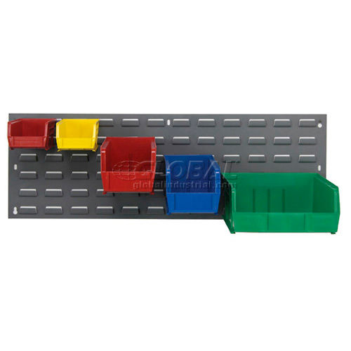 LOUVERED WALL PANELS WITHOUT BINS Steel Louvered Panels Mount To Wall, Benches, Cabinets Or Carts To Provide Convenient, Out-Of-The-Way Storage Of Hanging Bins. Louvered panels are made from heavy duty 16 gauge cold rolled steel with a gray baked enamel finish that ensures years of use. Louvers hold a variety of different Hanging Stacking Bin sizes to provide storage for multiple uses. Pre-drilled holes allow easy wall mounting (hardware not included). Customize your louvered panel with our full selection of Stacking Bins. - Pkg Qty 2.