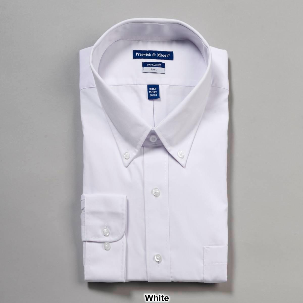 Stay neat and stylish with this Mens Big & Tall Preswick & Moore(R) wrinkle free dress shirt. Long sleeves with button cuffs Button down closure Chest pocket Solid.