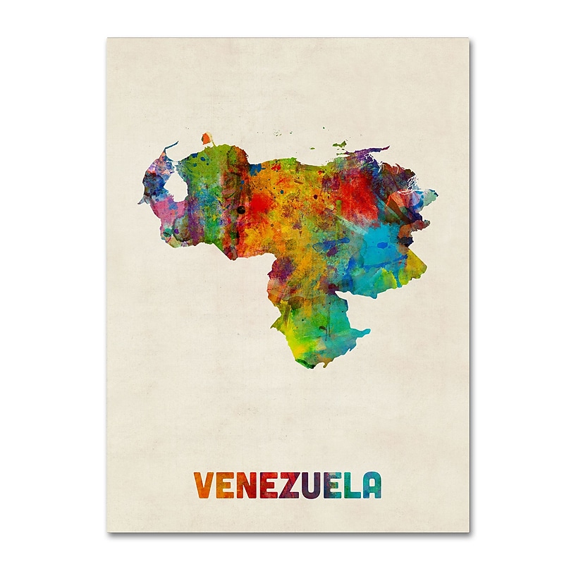 Trademark Fine Art ''Venezuela Watercolor Map'' by Michael Tompsett Canvas Art ()