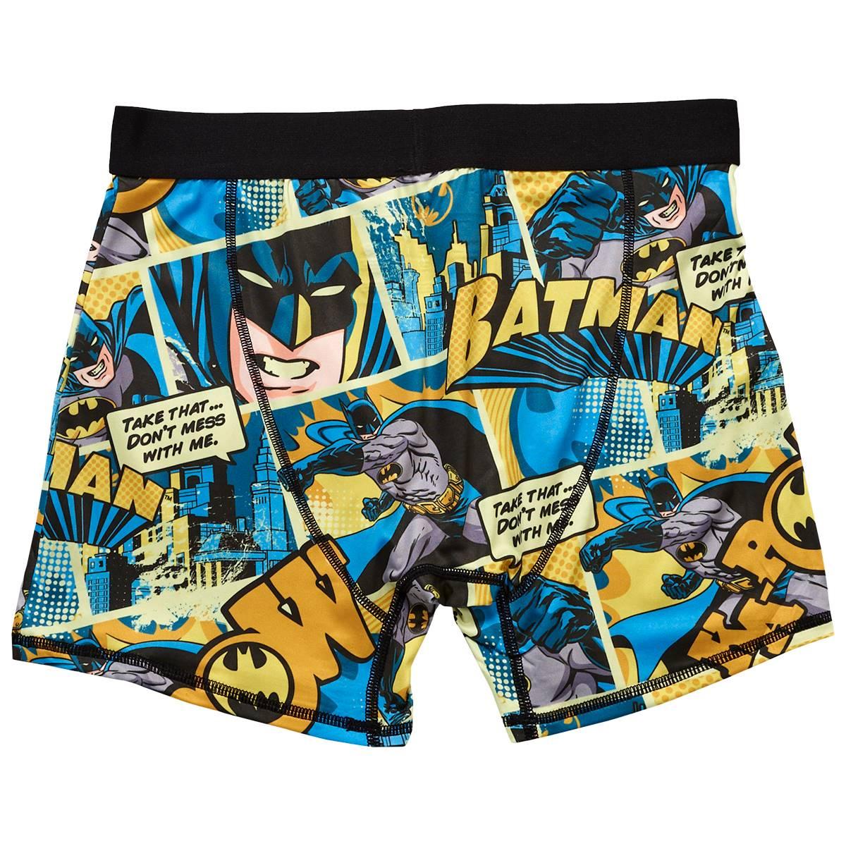 Pattern: Comic Book Panels Elastic waist for comfort Contrasting Trim "Take That...Don't Mess With Me" text bubbles "BATMAN(tm)" & "KA-POW text Batman(tm) character graphics & logo No fly front.