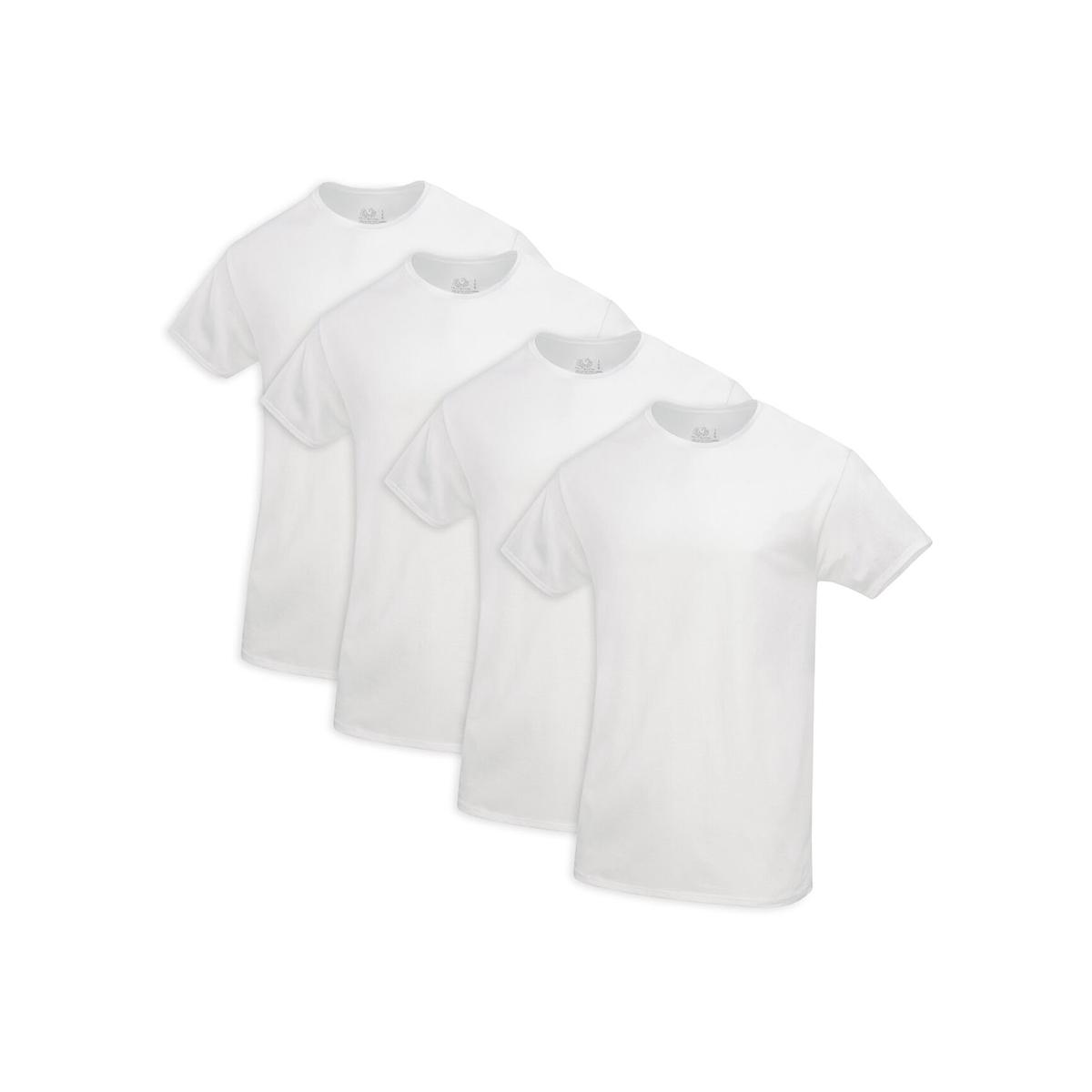This Mens Fruit Of The Loom 4-pack of crew neck t-shirts features a lay flat collar, comfort move sleeves for a full range of motion, optimal sleeve length for no bunching, moisture wicking, and no ride-up stays tucked.