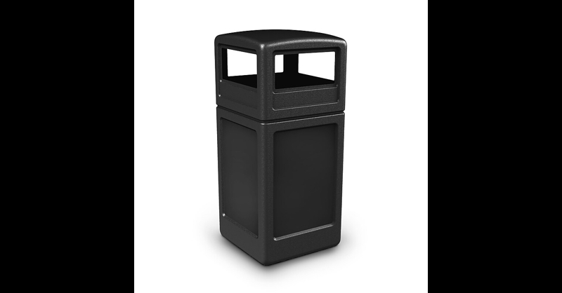 The 42 gallon square waste container with dome lid has a stream-lined, contemporary style offering a large capacity and convenient ease-of-use. The dome-shaped lid discourages the placement of garbage on top of unit and prevents rainwater, snow and sleet from collecting in the waste container. The innovative snap lid closure and patented Grab Bag system secure the trash bag in place for a cleaner appearance with a decreased chance of the lid blowing off. These heavy-duty waste containers are designed to withstand the harshest environments as well as offer easy maintenance. Environmentally friendly containers are molded from long-lasting recycled polyethylene. They won't rust, dent or chip. Large capacity, indoor or outdoor square waste container with dome lid. 41. 75"J x 18. 5"W x 18. 5"D. 42 gallon. Constructed from long lasting recycled polyethylene that won't fade, rust or chip and is graffiti-resistant. Covered dome lid protects it from the weather. Patented Grab Bag system keeps trash bag secure and prevents slippage. ADA compliant. Made in USA. 42 gal.