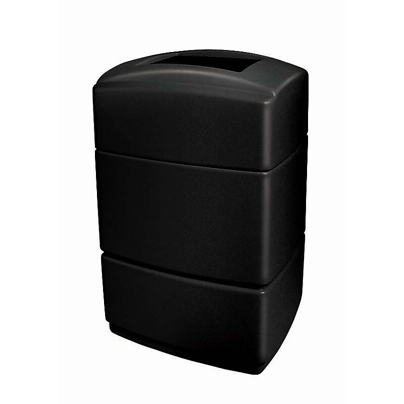 The PolyTec Series 40-gallon rectangular waste container has a unique, rectangle design, a large capacity, and convenient ease-of-use. The patented Grab Bag system secures the trash bag in place for a cleaner appearance with a decreased chance of the lid blowing off. These heavy-duty waste containers are designed to withstand the harshest environments as well as offer easy maintenance. Environmentally-friendly containers are molded from long-lasting recycled polyethylene. They won't rust, dent, or chip. Large capacity, indoor or outdoor, rectangular waste container. Gal. Comes in black. Constructed from long-lasting recycled polyethylene that is graffiti-resistant and won't fade, rust, or chip. 34"H x 20"W x 17"D. Open top offers convenient disposal. Patented Grab Bag system keeps trash bag secure and prevents slippage. ADA Compliant. Made in USA.